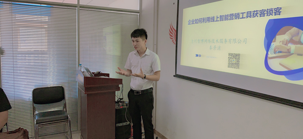 “師者,所以傳道授業(yè)解惑也?!痹诠矐c教師節(jié)的這一天,《智博商學(xué)院》線下培訓(xùn)會(huì)也如約在公司培訓(xùn)室進(jìn)行。此次培訓(xùn)會(huì)由資深網(wǎng)絡(luò)營(yíng)銷(xiāo)顧問(wèn)、新零售事業(yè)群秦經(jīng)理主講,以“企業(yè)如何利用線上智能營(yíng)銷(xiāo)工具獲客鎖客”為主題,意在為客戶(hù)朋友揭秘企業(yè)如何打通線上平臺(tái)、員工微信拓客管理及跟進(jìn)方案。
