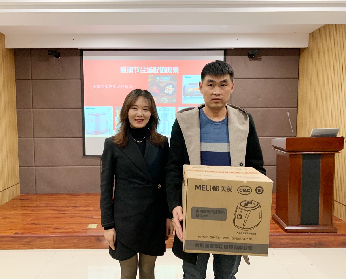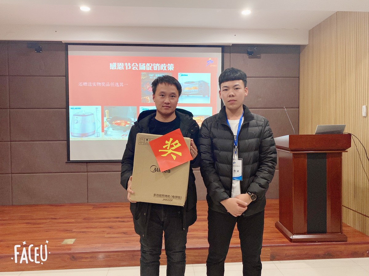 會議進入尾聲,總經(jīng)理李霖為在場的客戶朋友們發(fā)布了感恩節(jié)鉅惠政策。到場的大家在聽會后紛紛表示對慧優(yōu)采產(chǎn)品具有極高的興致,龍冠門業(yè)張總也在第一時間宣布成單,熱烈的洽談合作隨即展開。驚喜的是,我們?yōu)槊恳晃滑F(xiàn)場合作的客戶都安排了一份成單禮品。搞活動,我們是認(rèn)真的。